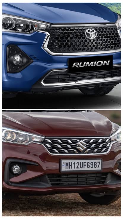 Toyota Rumion और Ertiga लगभग same platform पर बनी हैं, लेकिन Toyota brand reliability के कारण buyers को attract करती है।
